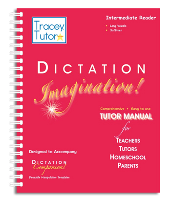Our centerpiece product is our red Dictation Imagination Tutor Manual, which correlates chapter by chapter with all other red Intermediate products. Dictation Companion is the companion resource to our Dictation Imagination Tutor Manual. Our Intermediate Dictation Companion provides hundreds of assorted manipulative templates (flash cards, word cards, sentence cards, sort boards, games, charts, spelling sheets, and a variety of activities) for instruction and phonetic reinforcement.